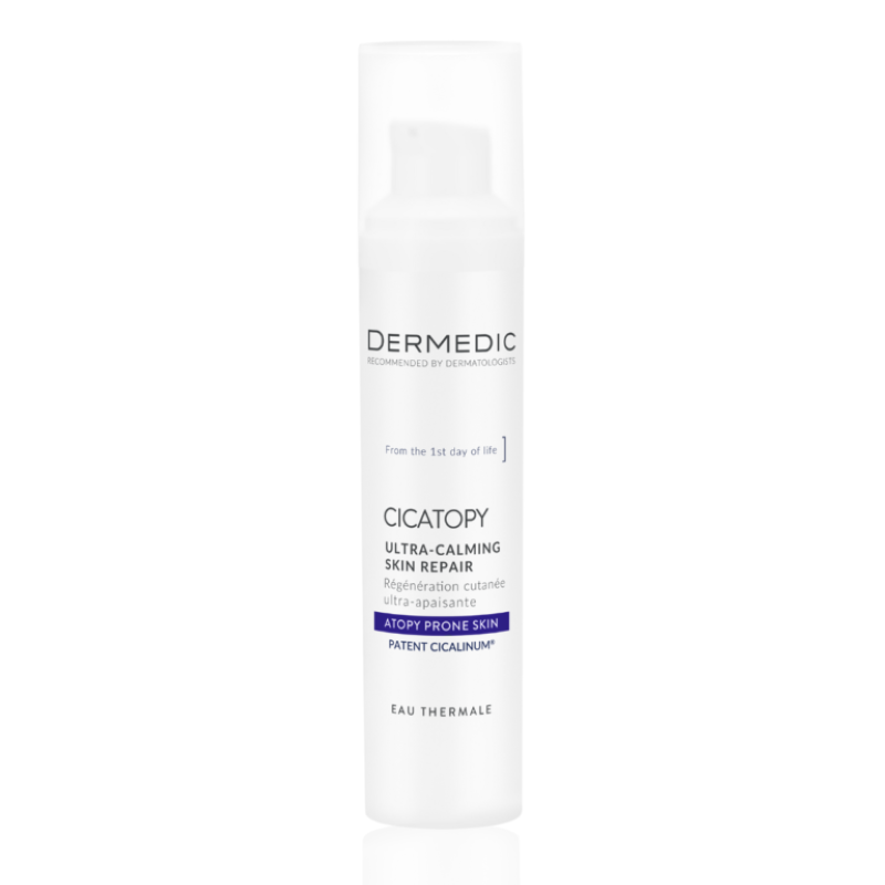 Ultra-umirujuća krema za obnovu kože donosi trenutno i dugotrajno olakšanje vrlo suhoj koži sa simptomima alergije i ekcema, uključujući atopiju i kontaktni dermatitis. Krema sadrži patentirani Cicalinum® kompleks – jedinstvenu kombinaciju omega 3, 6 i 9 nezasićenih masnih kiselina, fitosterole i β-glukan – koji ublažava 6 simptoma ekcema, uključujući uporan svrbež, iritaciju, zatezanje, suhoću, crvenilo i hrapavost. Olakšava regeneraciju epidermisa sa mikrooštećenjima uzrokovanim iritacijama kože, npr. grebanjem lezija. β-glukan uravnotežuje mikrobiom na površini kože, doprinoseći tako ublažavanju ekcematoznih lezija kože. Ova komponenta također ima ključnu ulogu u inhibiciji međubakterijske komunikacije i stvaranja biofilma od strane Staphylococcus aureus, koji je patogenski čimbenik u razvoju atopije. Sa umirujućom termalnom vodom. Nekomedogena. Renegeracija kože u području ožiljaka. Indikacije su suha koža kod djece i odraslih, kožne alergije, atopija, ekcemi, svrbež i peckanje kože, ihtioza, iritacije kože nakon radioterapije, njega pelenskog osipa i pelenskog područja, ubodi od insekata, opekotine od sunca, mikropovrede epidermisa, iritacije oko usta, abrazije, koža nakon estetskih zahvata, iritacije nakon brijanja.